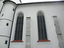 The chancel is finished into the shape of the five sides of the octagon. There is a sacristy and a tower in the northern part next to the chancel. The chancel is secured by pier rests resulting in very tall windows. In the end of these windows, there are pointed arches.