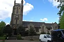 A road widening scheme caused the relocation of the churchyard walls in 1902, retaining the original railings, and on completion, a row of trees was planted to commemorate the Coronation of Edward VII and Alexandra.[22] In 1909, work started on a new south aisle designed by W. D. Caröe and Herbert Passmore, which was completed in the following year and extended in 1928 to form a side chapel by C. E Kempe & Co. Caröe also added a flight of steps leading to the tower door. A prominent wheelchair ramp was added to the south in 2003, designed by Kay Pilsbury Architects.[18]