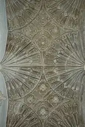 After 1439 this chapel was replaced with a new Perpendicular Gothic style chapel, which has fine fan vaulting of unusually high quality for a parish church.[3] It was built for Elizabeth Wilcote, widow of the then Lord of the Manor.[3] She had been widowed twice and lost two of her sons,[3] and had ordered the chapel as a chantry to offer Mass for them. Parts of the chapel's original 15th-century stained glass survive in its windows.[3] Also in the 15th century, new Perpendicular Gothic windows were inserted in the north and south aisles.[4]