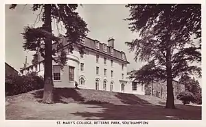 In 1922 it became the first Secondary School for Catholic boys in Southampton, under the name of St Mary's College, and opened with five Brothers and 30 pupils.[1] During the Second World War rapid expansion of the school took place; the number of pupils passing from 200 at the start of the War to 400 at the end. In 1992 the junior department started taking girls and in 2000 the senior department was opened to girls, and latterly approximately 25% of the pupils were girls. Former pupils are known as Old Simmarians.[2]