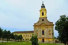 St Paul's Church (Serbo-Croatian: Crkva svetog apostola Pavla) is a Roman Catholic Parish church in Bač in Vojvodina, Serbia. The church was designed by Oswald Gáspár, architect of Czech origin and the building was constructed between 1773 and 1780.[1] Local parish was important regional centre before the Ottoman conquest of medieval Hungary.[2] Following the Great Turkish War parish was renewed in 1688 and in 1766 Archbishop Bátyany appointed himself as the parish priest.[2] He later funded the building of the new church at his own expense.[2] The majority of the parishioners as well as 14 out of 17 pastors until 2023 were of Šokci community with smaller groups of Catholic Hungarians, Germans and Slovaks.[2]