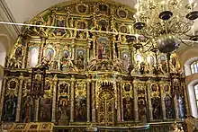 The church was considerably renovated as part of the battle's bicentennial celebrations. A Rastrelliesque chapel was constructed on the grounds, and Peter I's address to his soldiers at Poltava was inscribed on the wall.[2] It was at that time that the church was elevated to cathedral status. The parish was disbanded by the Soviets in the 1930s, and the building was converted into a warehouse. It was restored in the late 1970s and reopened in 2000 as a museum attached to St. Isaac's Cathedral.