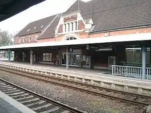 Stade (German: Bahnhof or Haltestelle Stade) is a railway station which opened in 1881 [5] and is located in the town of Stade, Lower Saxony, Germany. Stade station is the terminus for the rapid transit trains of Hamburg S-Bahn line S3 from Pinneberg via Hamburg-Altona station and central station, and a through station for the Metronom line from Hamburg to Cuxhaven. For the Metronom, Stade is the last station within the Hamburger Verkehrsverbund (HVV).