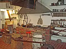 The entire workshop of Gütersloh's coppersmith Thiro of the year 1900 is exhibited in the former horse stable of the half-timbered house. Three generations of the Thiro family worked with the exhibited equipment till 1977, producing – among others – pots, pans and distillation apparatus for the local distilleries.