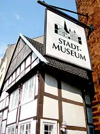 On 24 June 1982 Dr. Wilhelm Angenete (1890-1984) – a family doctor in Gütersloh – and his sister Else donated two real estates with buildings in the city of Gütersloh to the association for local history on condition of establishing a museum there.[1] In 1988 the town museum Gütersloh was opened in a brick building under the responsibility of Gütersloh's association for local history. Till today the town Gütersloh participates in the cost sharing. In 1997 a neighbouring half-timbered house could be renovated in a second construction phase. In the year 2000 the museum's café was opened.