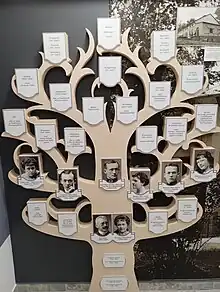 On September 2019, the FMM congregation opened a memorial area in the palace Izba Pamięci, in honor of "Blessed" Stanisław Starowieyski.[30] A modest necropolis of the Szeptycki family (including Stanisław Starowieyski's ashes) have been established in a circle around a wooden cross, on the outskirts of the park.[4] Around the place are located graves of the FMM sisters.[28]