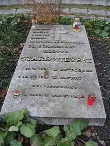 {{cite web}}: CS1 maint: bot: original URL status unknown (link) - Leszczyński, Mariusz (2018). "Bł. Stanisław Kostka Starowieyski (1895–1941)". akcja-katolicka.zamojskolubaczowska.pl. Katolicka w Diecezji Zamojsko - Lubaczowskiej. Retrieved 19 May 2023.
