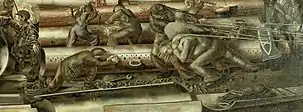 In 1982, sections from two of the eight panels were used as the artwork, on five different sleeves, for the single "Shipbuilding" by Robert Wyatt.[48] Four of the sleeves featured two different sections each from "Riggers" and "Riveters", which folded out into four-page leporello pictures.
