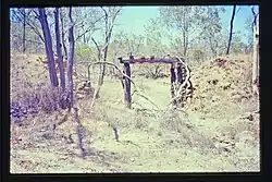 From the disturbance south of Weinart Siding to Victoria Siding, the tramway heads more or less south and is no longer close to the Herberton-Petford Road. North of Chinaman Creek, mining and grazing activities have caused considerable disturbance between southern point 17°23.653′S 145°11.068′E and northern point 17°23.504′S 145°11.151′E. There is a section of tramway formation visible between these points but part of it serves as a bank on the Mont Albion Station dam.[1]