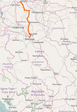 | 01308 | 3.132 km (1.946 mi) | 70.921 km (44.068 mi) | Kikinda (Nakovo) – Kikinda (Novi Bečej) (overlap with |