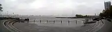 The 6-foot (1.8 m) tall bronze work sits atop a round pedestal inscribed with Francis Albert Sinatra. It depicts Sinatra at the age of 45 leaning against a lamppost and tipping his hat. It was created by Carolyn D. Palmer and dedicated in 2021 on December 12, the date of Sinatra's birth in 1915.[1][2] In attendance were the sculptor, Tina Sinatra, Joe Piscopo, and Mayor of Hoboken Ravinder Bhalla.[3] A plaque placed by the city in 1989 is also located in the park.[4]
