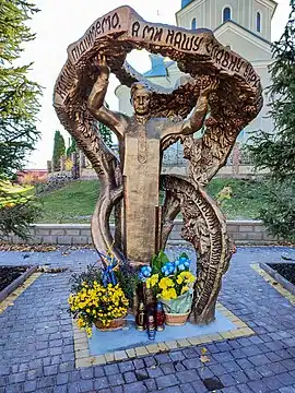 The sculptor is Ivan Muliarchuk;[3] the initiator of the installation is Nadiia Protskiv.[4] The grand opening took place on 26 May 1991 during the first Chervona kalyna festival.[5][6]