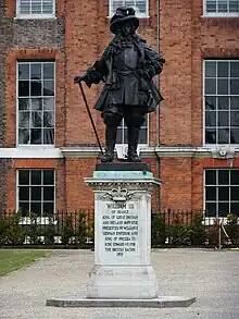 A bronze statue of William III of England stands on the south side of Kensington Palace in London, facing towards the Golden Gates. The statue was designed by Heinrich Baucke and erected in 1907. It was cast by the Gladenbeck foundry in Berlin and given as a gift by the German Emperor Wilhelm II to his uncle, King Edward VII.[1] The statue has been a Grade II listed building since 1969.[2]