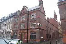 Steelhouse Lane police station is a former police station in central Birmingham, England. It was built for the Birmingham City Police and opened in 1933 as their Central Police Station,[1] replacing a Victorian station on the same site.[2] It was used by their successor, the West Midlands Police, until 2017 where they transferred to Lloyd House, also the force's HQ.[3][4] The carvings over the entrances, including the coat of arms of Birmingham, are by the local sculptor William Bloye.