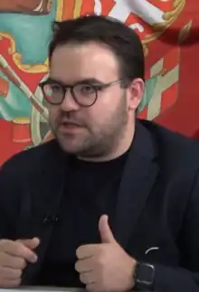 Stefan Jovanović (Serbian Cyrillic: Стефан Јовановић; born 1989) is a Serbian politician who has been a member of the National Assembly since 1 August 2022.[1] He is a spokesperson and secretary general of the centre-right People's Party (Narodna stranka, NS).[2]