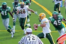 ![]() Stefan LeFors (middle) evading Roughriders defenders in 2007 | |
