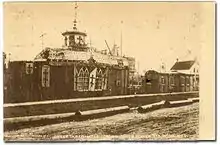 Tikon wrote in a letter dated October 1905: "The residence of our priest, Seraphim, in Winnipeg (with whom I stayed) is located beside Seraphim’s cathedral. It is difficult to describe his "cathedral": one must see it. Pillars are made from old, unfit iron pipes, and between them the space is plastered with boards and tin; crosses are made of old iron rods; ornaments and cornices are made from cardboard paper. The place resembles a kind of booth, where visiting actors and magicians give performances. On top of everything, Seraphim lives in his cathedral, where he climbs out onto the roof through the dome and, sits there on a chair, attracting large crowds of contemplatives (especially the neighboring Jews[8])."[9]