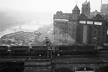 The stations were in the heart of the North East coal field, which at the time of their opening had hundreds of collieries.[49] Coal was delivered straight to the stations by rail. The Newcastle & Carlisle Railway was used for the South station, where 22 railway sidings were built.[2] Trains could only enter the sidings when travelling in a westerly direction.[50]