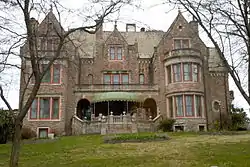 Created for industrialist James Hervey Sternbergh (1834-1913), the owner of the American Steel & Iron Manufacturing Company, and his second wife,[2] it was named after Stirling Castle in Scotland and was built using squared granite ashlar. Located at 1120 Centre Avenue in Reading, Pennsylvania,[3] it features a number of eclectic decorative elements including tall chimneys with decorated caps, a balustraded verandah, steeply pitched gable roofs, and roof dormers.[4]