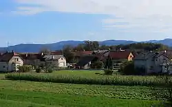 The walls of a square Roman structure were discovered in the north part of the Stožice cemetery in 1880. Associated finds included a coin from the 4th century. Roman tiles and graves have also been found at the Urbanček farm in Stožice. Before the Second World War, a textile factory and a vinegar and yeast factory operated in the village. Important economic activities also included sales of foodstuffs, especially milk and eggs, to Ljubljana.[6] After the war, there was extensive private construction in the Stožice.[1] The southern part of Stožice (79 houses with a population of 628) was annexed by Ljubljana in 1935.[6] The remainder of Stožice was annexed by the City of Ljubljana in 1974, ending its existence as an independent settlement.[7]