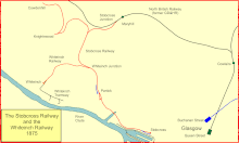 - Stobcross; not a NBR passenger station; goods station and connection to Queen's Dock, and later end-on junction with Glasgow City and District Railway and Glasgow Central Railway.