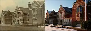 In 2011, planning permission was received to erect a new teaching block on the Woodsmoor side of the site,[4] to replace the Woodsmoor hall and laboratories that were demolished in 2010.[5] The build was completed in June 2012, and the "black and white tower" and classics block were demolished later that year.