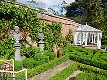 The Medieval Garden (12th to 15th century) shows herbs and plants grown for medicinal, cookery and dyeing uses. The 16th-century garden is laid out in a knots, a typical feature of the Elizabethan garden. The knots were planted out with germander, hyssop and box with the open spaces filled with brick dust or crushed shells to contrast the greenery.