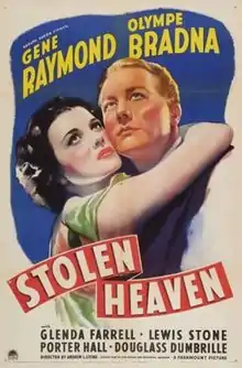 Stolen Heaven is a 1938 American drama film directed by Andrew L. Stone and written by Eve Greene, Frederick J. Jackson and Stone. The film stars Gene Raymond, Olympe Bradna and Glenda Farrell. The film was released on May 13, 1938, by Paramount Pictures.[1][2] The screenplay concerns two jewel thieves who pose as musicians to elude pursuing law officers.