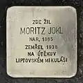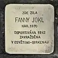 Jokl, FannyFanny Jokl was born on 27 March 1870. She was married to Moritz Jokl. The couple had two daughters, Frieda and Annie (born 1905), and four sons, Paul (born 1895), Fritz, Wilhelm (born 1899) and Erich (born 1909). The family owned a house in the center of the city, opposite the City Café. After the signing of the Munich Agreement which enabled the German Reich to invade and occupy Krnov, the family decided to flee to Liptovský Mikuláš. Along the way, her husband had a heart attack and died. He was 69 years old. He was buried in the Jewish cemetery of Liptovský. Thereafter the family was scattered to the four winds. Her son Fritz, his wife and his two little children succeeded in emigrating to Palestine in March 1939 with legal British permits. Her daughter Frieda and her husband flew to Hungary, their daughter left for London, their son for Palestine. Fanny and Moritz Jokl's oldest son Paul flew to Paris.[20] Fanny Jokl herself was caught in Slovakia and deported from Žilina to Auschwitz concentration camp with the transport of 22 September 1942. Her transport number was 520. She was murdered by the Nazi regime at the age of 72.[26]