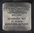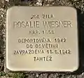 Wiesner, RosalieRosalie Wiesner née Šegerinová, also Rosalia, was born on 18 August 1858 in Tvrdošín, Slovakia. She was married to Adolf Wiesner. The couple had four children: Růžena (born 1883 in Gilowice, later married to Sigmund Lowy), Heinrich, Ida and Friedrich. Her husband died around 1901. She was the owner of the famous Café Avion in Český Těšín. The café was destroyed by retreating Polish forces in September 1939. After the German occupation of the town she moved to Žilina to live with her daughter Ida, who was married to Árpád Braun, a doctor of law. The couple had a baby son, named Heinrich. In April 1942 all four family members were arrested and deported to Auschwitz concentration camp. On 15 June 1942, at the age of nearly 84, Rosalie Wiesner was murdered by the Nazi regime.[1]