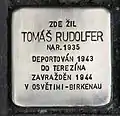 Soukenická 83/28 Rudolfer, TomasTomas Rudolfer was born on 30 November 1935. His parents were Mordechai Max Rudolfer (1905-?) and Yaffa Drora Rudolfer (1916-1995). His parents divorced. The fate of his father is unknown. His grandfather Dr. David Rudolfer lost his life in Theresienstadt concentration camp in September 1942. The boy's last address before deportation was in Brno. On 6 March 1943 the 7 year old was deported to Theresienstadt by transport Cv. His transport number was 919 of 1,022. He stayed there for nearly 19 months. On 23 October 1944 he was deported to Auschwitz concentration camp by transport Et. His transport number was 922 of 1,714. There he was killed by the Nazi regime.[45][46][47]