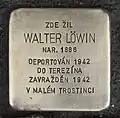 Soukenická 140/21 Löwin, WalterWalter Löwin, also Valtr, was born on 29 October 1886 in Krnov. He was married to Mathilde née Fichmann. His last residence before deportation was in Prague II, Mezibranská 5. On 27 July 1942 he and his wife were deported to Theresienstadt concentration camp by transport AAu. His transport number was 270 of 1,002. Within eight days, on 4 August 1942, the couple were deported to Maly Trostenets extermination camp by transport AAz. His transport number was 491 of 1,000. Walter Löwin and his wife were murdered there.[40][41]
