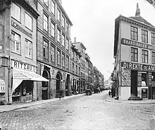 The property was acquired by clockmaker Julius Aagaard ub around 1850. The property was home to 24 residents in eight households at the time of the 1850 census. Julius Aagaard resided alone on the ground floor.[20] Lars Rasmus Schou, a grocer (høkerkræmmer), resided on the first floor with his wife Karen Marie Schou, their one-year-old son, an apprentice, a maid and the former owner of the property Birch.[21] Frederik Christian Amonsen resided alone on the second flor.[22] Gudrun Brynjulsison, an Icelandic widow, resided on the second floor with her son Gisle Brynjulsison[23][24] Peter Samuel, a workman, resided on the ground floor of the rear wing with his wife Marie Samuel and their six children (aged one to 11).[25] Jørgen Hansen, another workman, resided on the first flor of the rear wing with his wife Ane Magrethe.[26] Ole Mehlstrøm, a tailor, resided on the second floor of the rar wing with his 13-year-old son Johannes Gabriel.[27] Christian Dreier, a musician in the Royal Life Guards' music corps, resided on the third floor of the rear wing with his wife Hansine Dreier.[28]