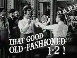 Pugnacious Biff calls out Nicholas's barbershop patron over Miss Brush's honor