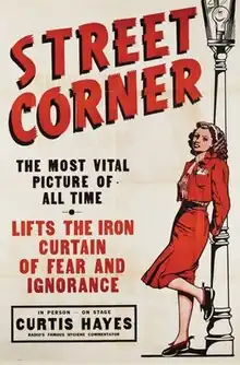 Street Corner is a 1948 American exploitation film directed by Albert H. Kelley, produced by Wilshire Pictures, and featuring Johnny Duncan, Eddie Gribbon, and Marcia Mae Jones.[1] It was released on DVD in 2003 by Something Weird Video.