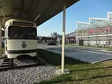 Kansas City Public Service streetcar 551 is a PCC (President's Conference Committee) streetcar preserved for static display in the River Market neighborhood of Kansas City. It was built in 1947 by the St. Louis Car Company for service in Kansas City. When the city closed its streetcar service, it was sold to the Toronto Transit Commission in 1957 and became TTC 4762. In 1973, the streetcar was sold to the San Francisco Municipal Railway, renumbered as Muni 1190 and ran as a tourist attraction. In 1979, the streetcar was sold to the Western Railway Museum remaining as Muni 1190. In 2006, KC Regional Transit Alliance purchased the streetcar, restored it as KCPS 551 and put it on static display at Kansas City Union Station.[8] In 2016, the streetcar was put into storage because its Union Station site was repurposed. Finally, in 2017 the streetcar was moved again for display on its current River Market site next to the modern KC Streetcar line.[9]