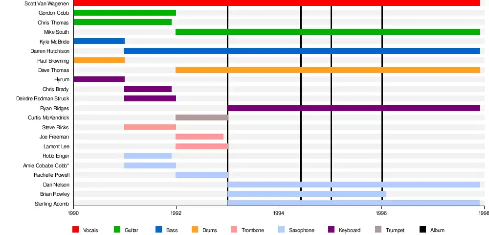 The band, based in Provo, Utah,[1] started playing together in December 1990. Scott Van Wagenen, the lead singer, had no previous singing experience. Van Wagenen recalled trying to write ska and ska-funk music, but said that their efforts to make music in those genres were unsuccessful, and that they were more successful than they deserved to be.[2]