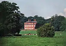 The house built by John Congreve in about 1700 was originally two-storeyed with dormers above, a three-bay pedimented central block and two-bayed wings with a central pedimented entrance door.