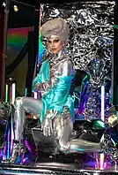 British Vogue thought Gaga looked like a "Y2K-inspired desert warrior" in the music video and called the singer's aesthetics a return to her "meat-dress-era form".[72] Dave Holmes for Esquire described Gaga's dancing in the video as "back to a kind of movement that is less 'dance' and more a series of gestures. The classics are back: 'wrists on forehead' makes a triumphant return, as do 'hand covering eye' and 'forearms in x formation'."[71] Craig Jenkins for Vulture described the video as a "purposeful visual overkill" with tight choreography and compared the video to the music video for "Genesis" by Grimes, the video game Bayonetta, and 1960s-era Star Trek.[73] Brandon Wetmore for Paper magazine called the video as a Mad Max-evoking "pride parade",[74] pairing "Bad Romance"-era choreography with Artpop-era camp, and he contrasted the vibrancy and color of the video with the muted, somber visuals from the A Star Is Born era.[74] Sabrina Barr of The Independent highlighted the "outlandish" costumes of the video, saying that "the fashion in the video is as idiosyncratic and fabulous as Gaga herself" and pointed out inspirations from Power Rangers and the Alien films.[68] Alexa Camp for Slant Magazine was critical of the video, calling it corny and lacking "the (comparatively) sophisticated mythology or narrative of videos like 2011's 'Born This Way'."[40]