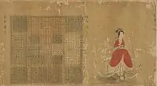 Su Hui (simplified Chinese: 苏蕙; traditional Chinese: 蘇蕙; pinyin: Sū Huì, fourth century CE) was a Chinese poet of the Middle Sixteen Kingdoms period (304 to 439) during the Six Dynasties period. Her courtesy name is Ruolan (traditional Chinese: 若蘭; simplified Chinese: 若兰; pinyin: Ruòlán). Su is famous for her extremely complex "palindrome" (huiwen 回文) poem, apparently having innovated this genre, as well as producing the most complex example to date.[1] Su Hui is depicted in the Wu Shuang Pu (無雙譜, Table of Peerless Heroes) by Jin Guliang.