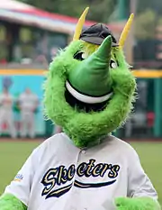 Before January 31, 2022, The Sugar Land Skeeters utilized two mascots. Their primary mascot was Swatson: a large, green mosquito who performed stunts, engaged in fan activities, and was often found throughout the stadium during games. There was also a secondary mascot, the Rally Sloth, who was used in the middle of the ninth inning whenever the Skeeters are trailing. The Rally Sloth was first used in 2019 and was the main mascot of the Sugar Land Lightning Sloths of the 2020 Constellation Energy League. As of January 31, 2022, The Team was rebranded as the Sugar Land Space Cowboys and changed their Mascot to Orion "Of the species “Canis Cosmicus,” Orion is a cosmic space dog that has become the trusty sidekick of the Sugar Land Space Cowboy."[44]