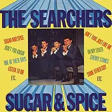 Sugar and Spice is the second studio album by the British rock band The Searchers released in 1963. This album features the band's second big hit single "Sugar and Spice". With two successful Top 5 albums in three months, and two other Top 3 hit singles at the time, the group proved to be the strongest to emerge from Liverpool next to the Beatles and Gerry and the Pacemakers. They solidified their position further with another album track, "Ain't That Just Like Me", which was later released in the US and hit #61 on the Billboard Hot 100.[3]