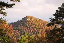 Sugarloaf Mountain is a hiking and mountain biking destination located in Cleburne County, Arkansas, east of the city of Heber Springs, Arkansas, in the foothills of the Ozark Mountains. It is a 690 feet (210 m) erosional remnant beside Little Red River (Arkansas). The mountain is topped by an Atoka formation, a geologic formation sequence of sandstone, siltstone, and shale.