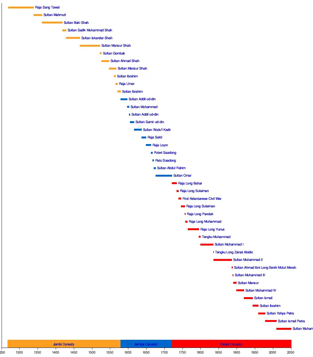 The order of the descendants, in descending order of degree of kinship : Sultan Ismail Petra, Sultan Yahya Petra, Sultan Ibrahim, Sultan Ismail, Sultan Muhammad IV.