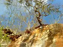 Deciduous trees predominate in limestone areas, reaching about 20 metres (66 ft) in height. These include aroeira, gameleira, angico, cedro, catiguá, embiruçu, paineira and maria-pobre. There are also species typical of the caatinga such as cactos mandacaru and figo-da-barbária, and shrubs such as pimentinha-do-mato. Around the Gruta da Lapinha the predominant trees are semi-deciduous, losing about half their leaves in the dry season, and growing to 15 to 20 metres (49 to 66 ft). These include angico-vermelho, angico-branco, jequitibá-branco and paineira. The original forest has been damaged by man, causing impoverishment of the soil and invasion of cerrado species. The park's management plan includes restoration of some of the areas.[1]