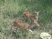 There are more than forty species of mammal present in this and the adjoining Sundarbans West Wildlife Sanctuary and Sundarbans South Wildlife Sanctuary. The rhesus macaque (Macaca mulatta) is plentiful and is the only primate in the area. Bengal tigers are also present; they have a reputation as being man-eaters, but their chief prey is the spotted deer (Axis axis) and the wild boar (Sus scrofa).[1] There are three species of wild cat, the leopard cat (Prionailurus bengalensis), the fishing cat (Prionailurus viverrinus) and the jungle cat (Felis chaus). Also present are three species of otter, one of which, the smooth-coated otter (Lutrogale perspicillata), has been domesticated by local fishermen. The South Asian river dolphin (Platanista gangetica) inhabits some of the larger water channels.[1]