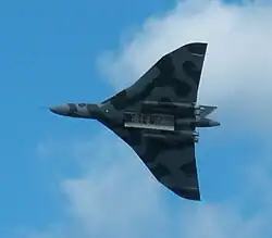 ![]() Avro Vulcan XH558, the last flying Vulcan Bomber, makes its first appearance at the Sunderland Airshow on 25 July 2009 | |