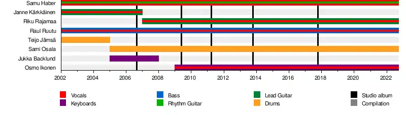 After a quiet 2019, at a press conference in Helsinki, the band announced on 2 December 2019 that they would not continue past 2020. They announced one final single titled “Thank You For Everything” and a small final tour in 2020 with a total of seven locations plus one festival, after which the band will no be longer active.[1] However, on 1 March 2021, they seemingly reunited, announcing new website and new album, alongside new band merch.