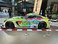 Hybrid cars first raced in the GT300 class in 2012, when apr introduced their Toyota Prius apr GT, and Team Mugen fielded a Honda CR-Z GT. Both cars were heavily modified from their production counterparts. The Prius was powered by a 3.4 liter V8 LMP1 engine, which worked in concert with production Hybrid Synergy Drive components; the CR-Z utilized a 2.8 liter V6 LMP2 engine and a 50 kW Zytek electric motor.[28][29] Both the CR-Z and Prius were mid-engined, differing from their front-engined road-going counterparts; this resulted in the CR-Z's withdrawal after the 2015 season, as new regulations for 2016 stipulated that GT300 cars' engines were to be located in the same position as in their production counterparts. However, apr took advantage of a loophole in the regulations to continue to race their mid-engine Prius until 2018,[30] when the team was required to build a new, front-engine Prius.[31]