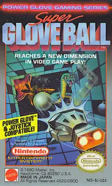 Super Glove Ball is a game made by Rare in 1990 for the Nintendo Entertainment System, specifically designed to be played with the Power Glove controller.[3] However, it can also be played with a standard NES controller. It was sold separately from the Power Glove.